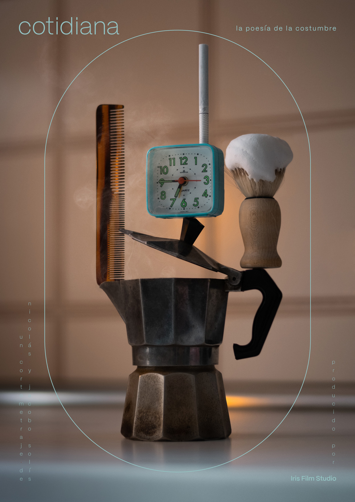 Las mañanas rutinarias son coreografías de un movimiento tras otro, gestos con poca grandeza pero que correctamente enlazados proporcionan la armonía mental necesaria para llevar el arranque del día a día. Imaginé un bodegón de elementos que forman parte de esta coreografía. Objetos básicos pero muy trascendentes en la rutina, dispuestos en perfecto equilibrio.